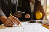 Zdjęcie "Widok bizneswoman trzyma ołówek w pobliżu planu i modeli domów w biurze " może być wykorzystywane do celów osobistych i komercyjnych zgodnie z warunkami zakupionej licencji Royalty-free. Obraz jest dostępny do pobrania w jakości wysokiej rozdzielczości do 5760x3840.