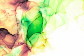 Naturalny abstrakcyjny płyn malarstwo sztuki z techniką tuszu alkoholowego. Miękkie marzycielskie kolory tworzą przejrzyste linie faliste.