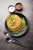 Zdjęcie "Paneer paratha to popularny północnoindyjski placek z mąki pszennej, nadziewany pikantnym, przyprawionym, tartym paneerem." może być wykorzystywane do celów osobistych i komercyjnych zgodnie z warunkami zakupionej licencji Royalty-free. Obraz jest dostępny do pobrania w jakości wysokiej rozdzielczości do 5760x3840.