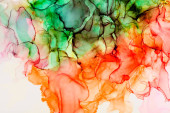 Naturalny abstrakcyjny płyn malarstwo sztuki z techniką tuszu alkoholowego. Miękkie marzycielskie kolory tworzą przejrzyste linie faliste.