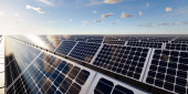 3d renderowania słonecznych lub fotowoltaicznych gontów w perspektywie na dachu domu lub budynku mieszkalnego. Technologia systemowa do wytwarzania energii elektrycznej lub prądu stałego w świetle w nocy.