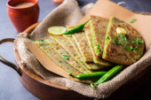 Paneer paratha to popularny północnoindyjski placek z mąki pszennej, nadziewany pikantnym, przyprawionym, tartym paneerem.