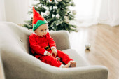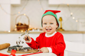 Szczęśliwa mama i syn gratulują dziadkom podczas wirtualnego rodzinnego spotkania towarzyskiego na wideokonferencji w domu. Pozdrowienia świąteczne, wirtualne święta