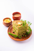 Zdjęcie "Paneer paratha to popularny północnoindyjski placek z mąki pszennej, nadziewany pikantnym, przyprawionym, tartym paneerem." może być wykorzystywane do celów osobistych i komercyjnych zgodnie z warunkami zakupionej licencji Royalty-free. Obraz jest dostępny do pobrania w jakości wysokiej rozdzielczości do 5760x3840.