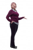 Pełnowymiarowa. Dojrzała kobieta w dżinsach. izolowany na białym