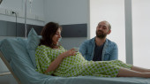 Zdjęcie "Młoda kobieta w ciąży leży w szpitalnym łóżku." może być wykorzystywane do celów osobistych i komercyjnych zgodnie z warunkami zakupionej licencji Royalty-free. Obraz jest dostępny do pobrania w jakości wysokiej rozdzielczości do 5760x3840.