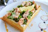 trzy pyszne bruschetta z pomidorami, łososia i bakłażanem