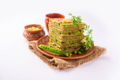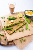 Parathas groszek zielony lub flatbread lub matar parathas z twarogu i gorącej herbaty