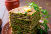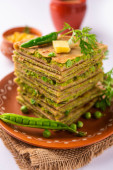 Parathas groszek zielony lub flatbread lub matar parathas z twarogu i gorącej herbaty