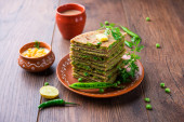 Zdjęcie "Parathas groszek zielony lub flatbread lub matar parathas z twarogu i gorącej herbaty" może być wykorzystywane do celów osobistych i komercyjnych zgodnie z warunkami zakupionej licencji Royalty-free. Obraz jest dostępny do pobrania w jakości wysokiej rozdzielczości do 5760x3840.