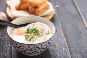 Zdjęcie "Congee w tajskim wzorem filiżanki i smażone ciasto są tajskie jedzenie i jedzenie ulicy popularne do jedzenia w godzinach porannych" może być wykorzystywane do celów osobistych i komercyjnych zgodnie z warunkami zakupionej licencji Royalty-free. Obraz jest dostępny do pobrania w jakości wysokiej rozdzielczości do 5760x3840.