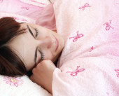 atrakcyjna młoda kobieta, spanie w łóżku z laptopa