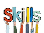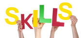 Umiejętności - ludzkie dłonie trzymające kolorowe litery