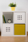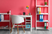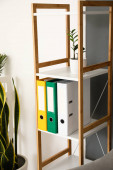 Zespoły regałowe z folderami w pobliżu ściany świetlnej