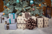 Lokalizacja Nowy Rok z choinką i prezenty w kolorze szarym