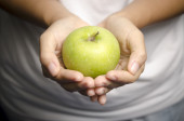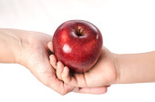 dziecko trzyma jabłko świeże