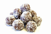 Świąteczne słodycze. Rum kulki zawinięte w kokosa. Tradycyjne domowe ręcznie robione ciasteczka świąteczne w Czechach.