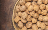 Zdjęcie "Orzechy włoskie na ciemnym stole vintage. Orzechy włoskie z zielonymi liśćmi. Przestrzeń chroniona." może być wykorzystywane do celów osobistych i komercyjnych zgodnie z warunkami zakupionej licencji Royalty-free. Obraz jest dostępny do pobrania w jakości wysokiej rozdzielczości do 5760x3840.
