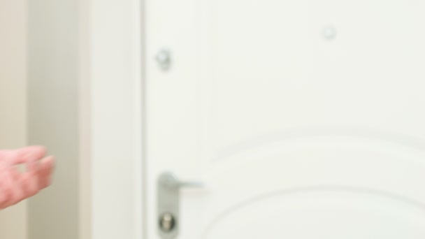 Zbliżenie mężczyzny pukającego do drewnianych drzwi