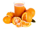 świeży sok pomarańczowy i klementynki z liśćmi wyizolowanymi na białym tle