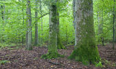 światła docierającego mglisty liściaste stand stare drzewa świerk