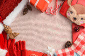 Ławka ze składanymi ubraniami świątecznymi w pokoju