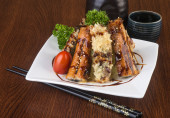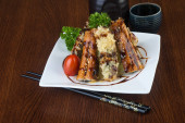 dania kuchni japońskiej. Unagi lub węgorza na tle
