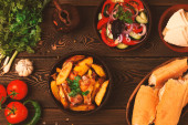 Ziemniaki z kurczakiem, danie smażone na glinianej patelni, ketsi, Ojakhuri, kuchnia gruzińska, styl rustykalny,