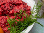 Klasyczna sałatka ziemniaczana z ziołami i mięsem.