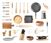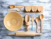 kupie naczynia kuchenne drewniane, sfotografowany z góry