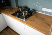 Zdjęcie "Czarny zlewozmywak z elastycznym kranikiem we wnętrzu kuchni Scandi" może być wykorzystywane do celów osobistych i komercyjnych zgodnie z warunkami zakupionej licencji Royalty-free. Obraz jest dostępny do pobrania w jakości wysokiej rozdzielczości do 5760x3840.