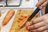 Koncepcja: szybka dostawa świeżych warzyw ze sklepu do kuchni