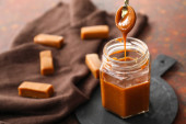 Zdjęcie "Przyjmowanie pysznego solonego karmelu z łyżeczką ze szklanego słoika przy stole, zbliżenie" może być wykorzystywane do celów osobistych i komercyjnych zgodnie z warunkami zakupionej licencji Royalty-free. Obraz jest dostępny do pobrania w jakości wysokiej rozdzielczości do 5760x3840.