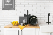 Zdjęcie "Puste szklanki na stole w kuchni, zbliżenie" może być wykorzystywane do celów osobistych i komercyjnych zgodnie z warunkami zakupionej licencji Royalty-free. Obraz jest dostępny do pobrania w jakości wysokiej rozdzielczości do 5760x3840.