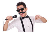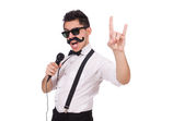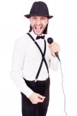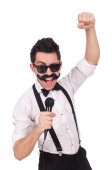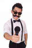 Zdjęcie "Człowiek z mikrofonem na białym" może być wykorzystywane do celów osobistych i komercyjnych zgodnie z warunkami zakupionej licencji Royalty-free. Obraz jest dostępny do pobrania w jakości wysokiej rozdzielczości do 5760x3840.