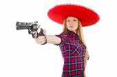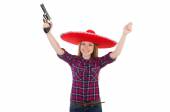 Kowbojka kobieta z pistoletem izolowane na białym