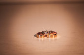 Buty panny młodej, złote pierścionki. Dzień panny młodej. Szczegóły dotyczące ślubu