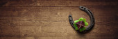 Podkowa i pojęcie szczęścia. Karta Dnia Św. Patryka. Ilustracja 3D
