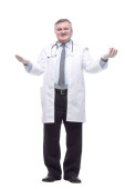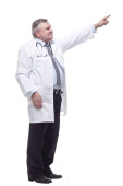 kompetentny lekarz z podkładką. izolowany na białym tle.