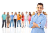 Grupa na white.teenager chłopiec dziewczynka i nastolatek