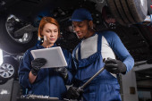 Zdjęcie "Mechanik w rękawiczkach patrzący na narzędzia w pobliżu zamazanego afrykańskiego kolegi i samochodu w służbie " może być wykorzystywane do celów osobistych i komercyjnych zgodnie z warunkami zakupionej licencji Royalty-free. Obraz jest dostępny do pobrania w jakości wysokiej rozdzielczości do 5760x3840.