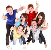 widok z góry młodych przyjaciół z ręce podniesione