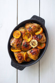 Pyszne piersi kurczaka z pomarańczami na świątecznym stole.