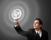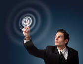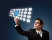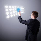 mężczyzna naciskając przycisk dotykowy
