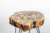 Drewniany stół. Cięcie, cięcie drewniane. Loft meble. Na białym tle. Izolacja