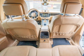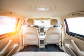 Zdjęcie "Luksusowe wnętrze samochodu. Beżowe wygodne siedzenia, kierownica, deska rozdzielcza, klimatyzacja, prędkościomierz, wyświetlacz, drewniane światło dekoracyjne" może być wykorzystywane do celów osobistych i komercyjnych zgodnie z warunkami zakupionej licencji Royalty-free. Obraz jest dostępny do pobrania w jakości wysokiej rozdzielczości do 5760x3840.