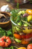 Pikled Vegetables. Healthy Preserved Jar Food.