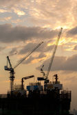 pracownik pracujący w wysokim budynku budowy przed beauti