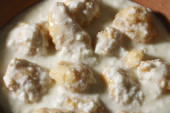 Makhmali Kofta - Pierogi z serem i ziemniaki faszerowane rodzynkami i podawane z kremowym sosem.