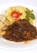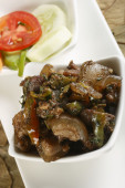 Baranina marynowana w jogurcie pikantne i gotowane w czerwonym sosie